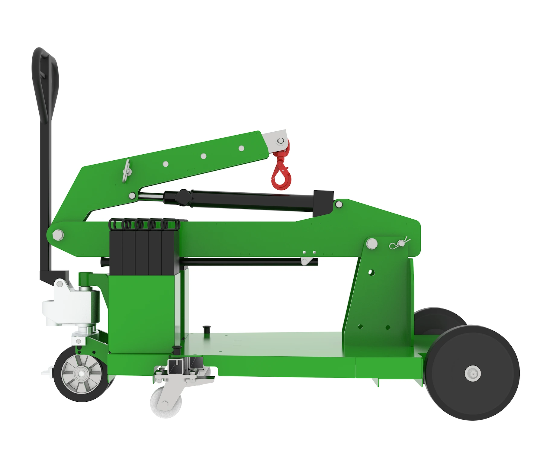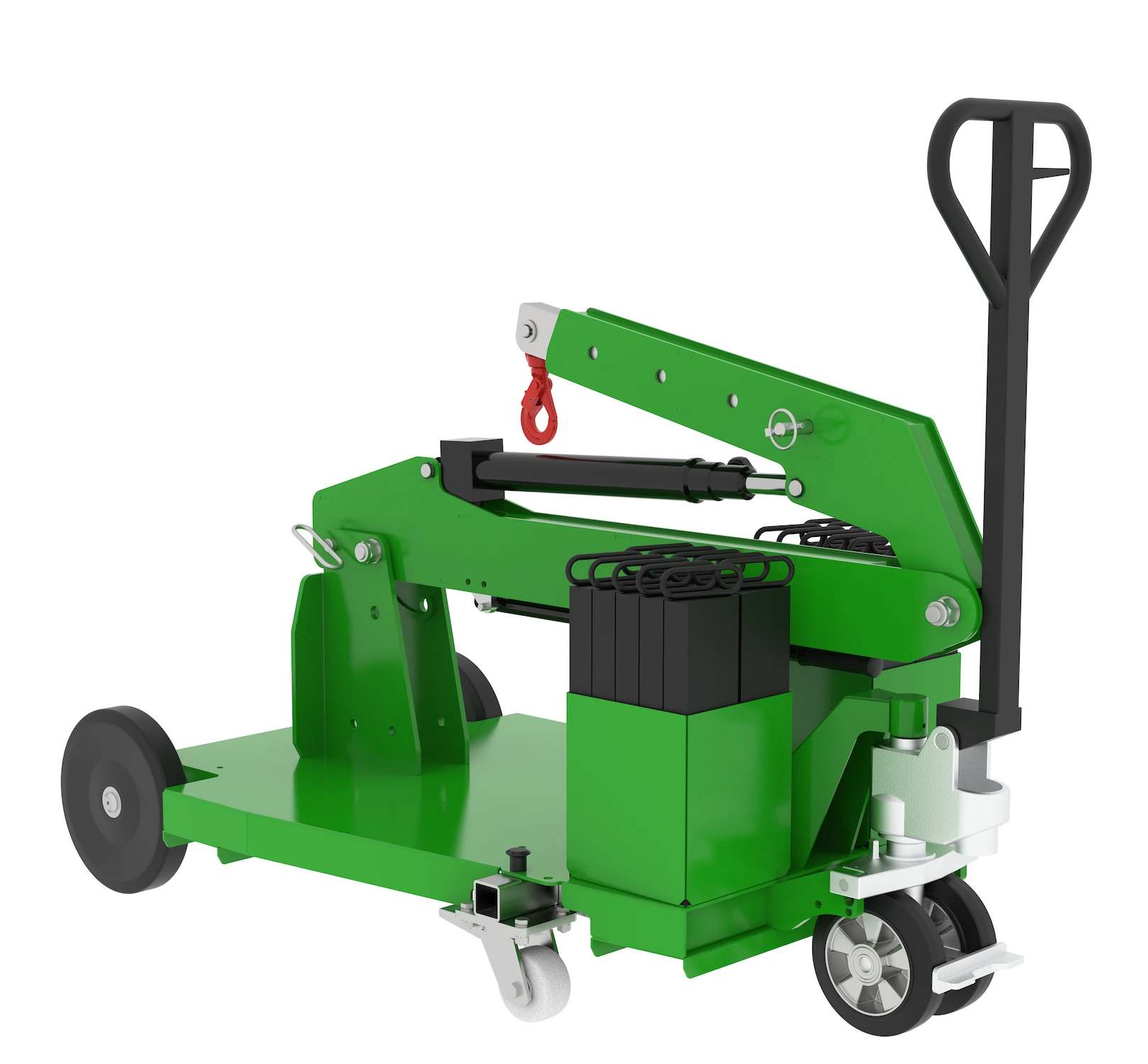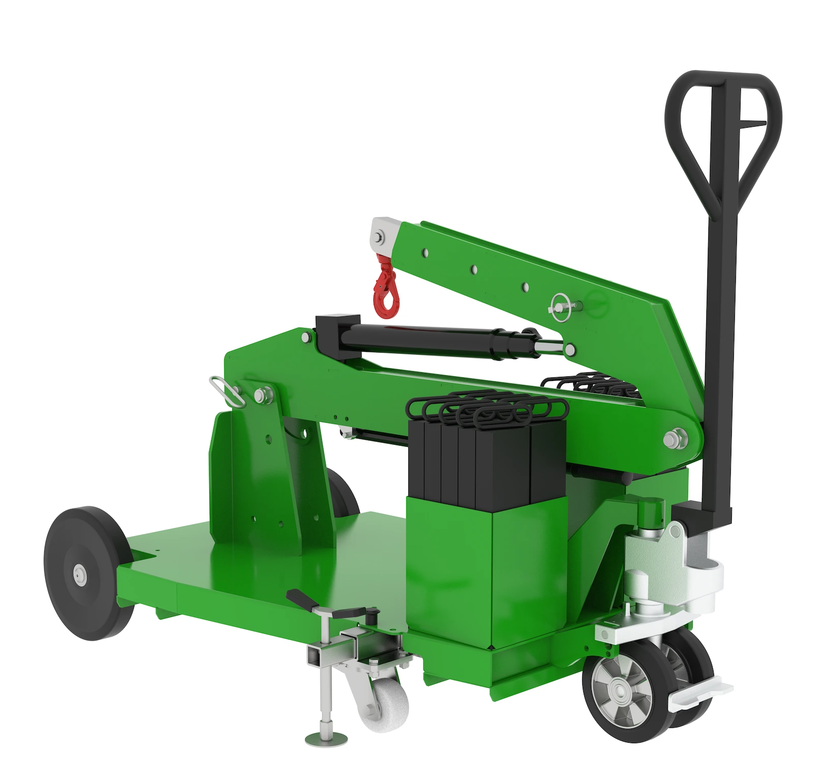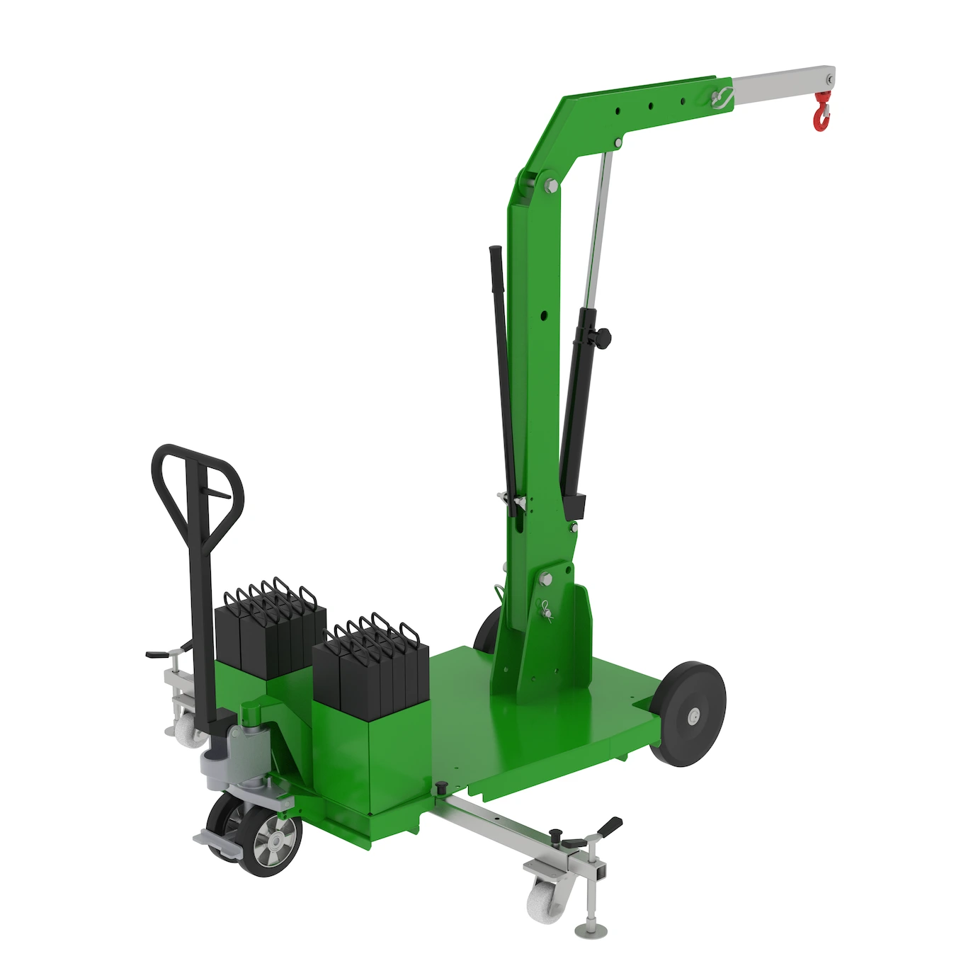 Der transportable Kran MF450 ermöglicht präzise und kontrollierte Hubbewegungen bei unterschiedlichsten Lasten. Der Ausleger ist mechanisch verstellbar und in 4 Positionen arretierbar, sodass sich Reichweite und Einsatzbereich flexibel an die jeweilige Aufgabe anpassen lassen. Ergänzt wird dies durch einen schwenkbaren Haken und eine auf präzises Handling ausgelegte Konstruktion, die das Positionieren von Lasten deutlich erleichtert.